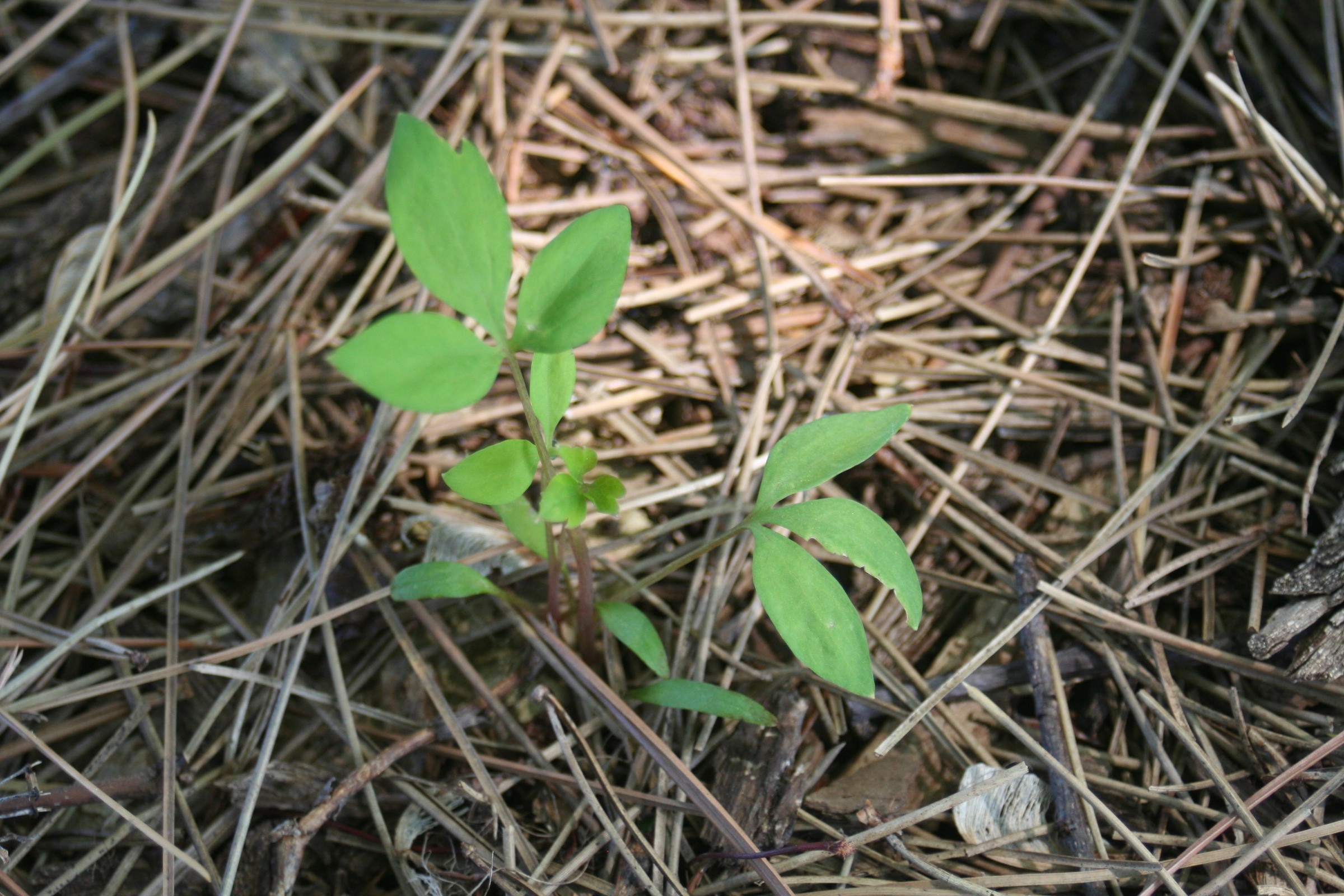 This herbaceous plant forms loose, bushy clumps up to 3 feet tall and 4 feet wide from brittle, fleshy roots. The reddish new foliage emerges from the ground in very early spring and plants grow quickly to be one of the first flowering perennials in the spring, combining nicely with daffodils and Virginia bluebells (Mertensia virginica).