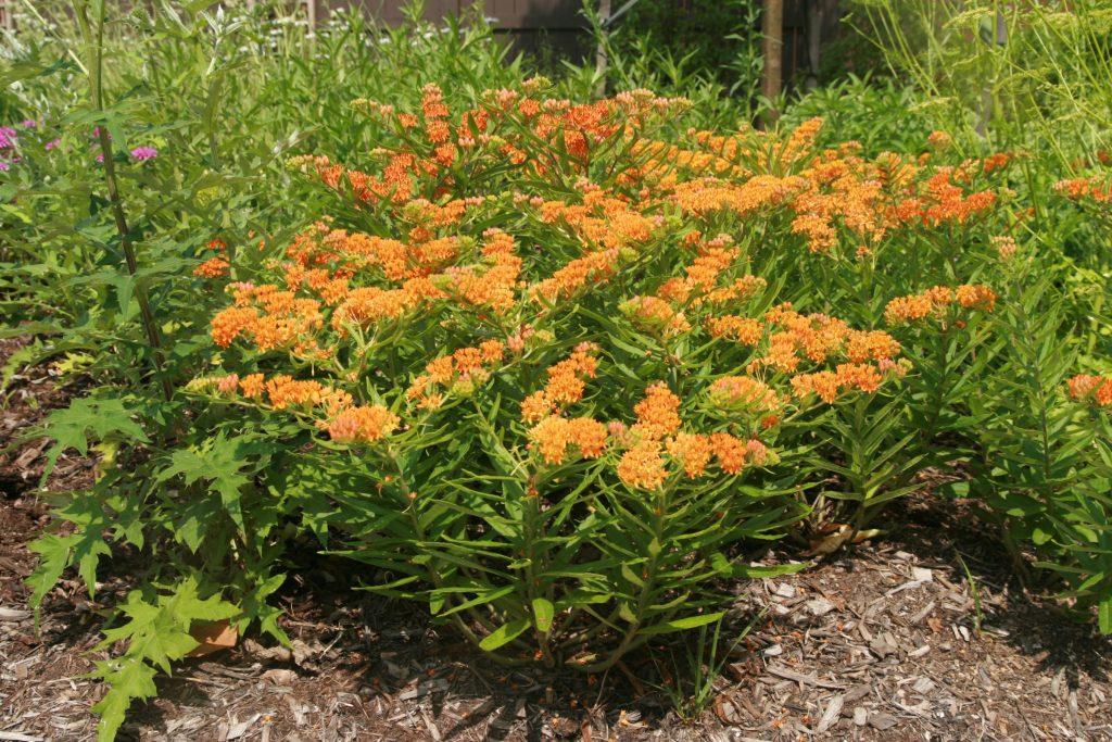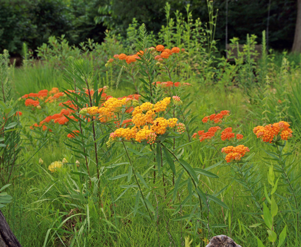 Butterfly weed works well with other native perennials such as yellow coreopsis (Coreopsis verticillata), purple coneflower (Echinacea purpurea), goldenrod (Solidago spp.), blazing star (Liatris spp.), black-eyed Susan (Rudbeckia hirta), orange coneflower (Rudbeckia fulgida), or grasses such as little bluestem (Schizachyrium scoparium) or prairie dropseed (Sporobolus heterolepis) in a meadow or prairie. It is a larval host plant for several butterflies, including monarch (Danaus plexippus), so you may want to position plants in the landscape where won’t be an eyesore if it is eaten ragged by caterpillars.
