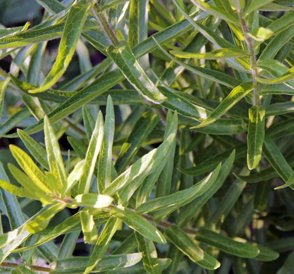 This bushy perennial features an abundance of dark green foliage on multiple erect to ascending stems growing from a large taproot, forming clumps 1½ to 3 feet tall and wide. Butterfly weed has tough, woody, knobby roots that can grow several feet deep and were used medicinally by Native Americans. Leaves are lanceolate to oblong, up to 6 inches long, primarily alternate and often crowded together on stout, green to dull reddish-purple hairy stems. Leaves have toothless margins, pointed tips and may be sessile (stalkless) or have very short petioles. Upper leaf surfaces are smooth and glossy, with the underside lighter in color and finely hairy, especially along the veins. Unlike most members of the milkweed family, this species does not have milky sap. Leaves turn a dull yellow in fall before stems die back to the ground for the winter. It is best to wait until spring to cut foliage. Plants are slow to emerge late in the spring.