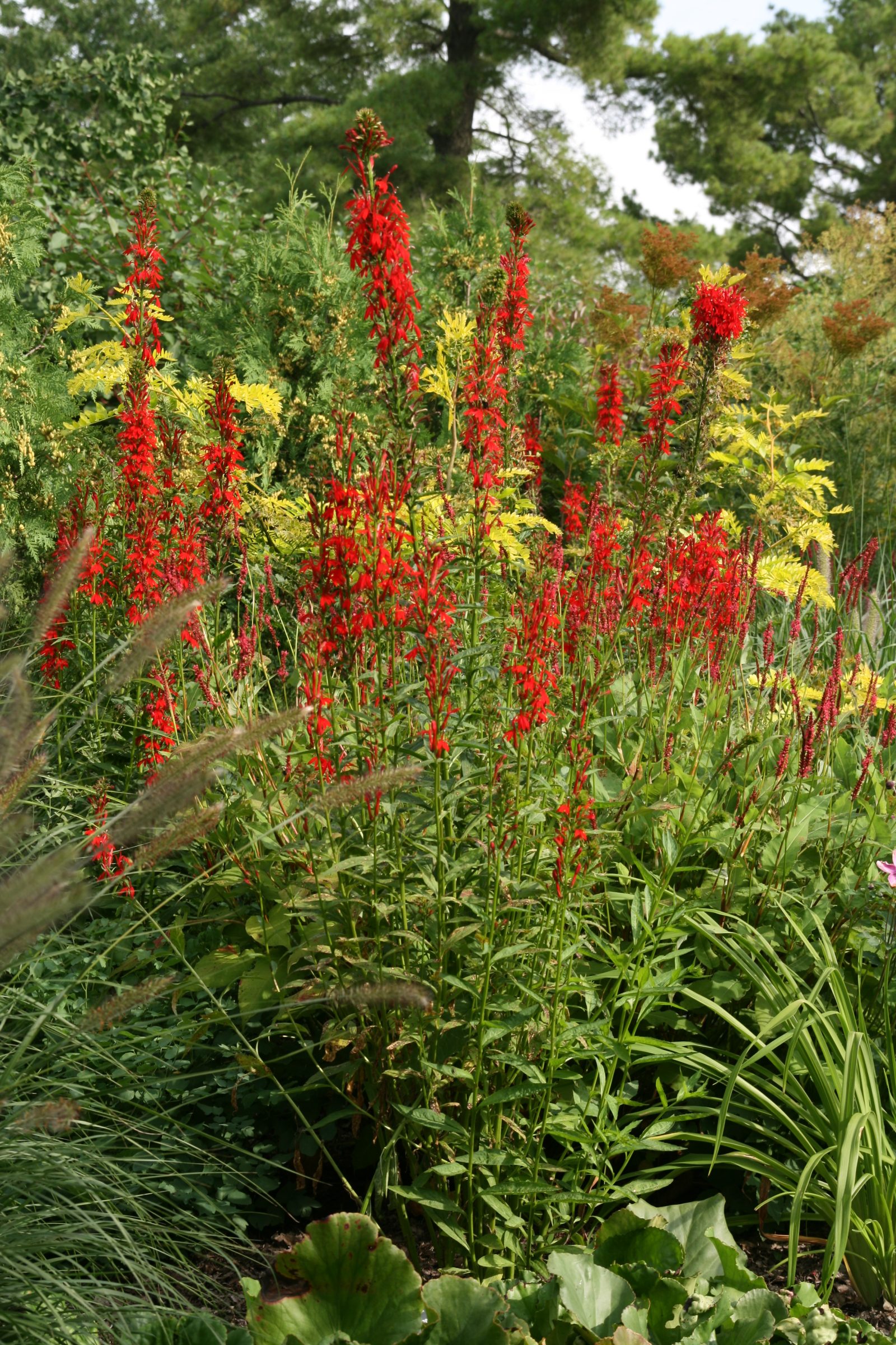 Lobelia cardinalis is easily grown in moist soils in full sun to partial shade. It has few pests and is not favored by deer or rabbits. Flower stalks may need to be staked depending on the exposure to strong winds. It is considered a short-lived perennial, and dividing plants every few years helps them to persist in the garden.