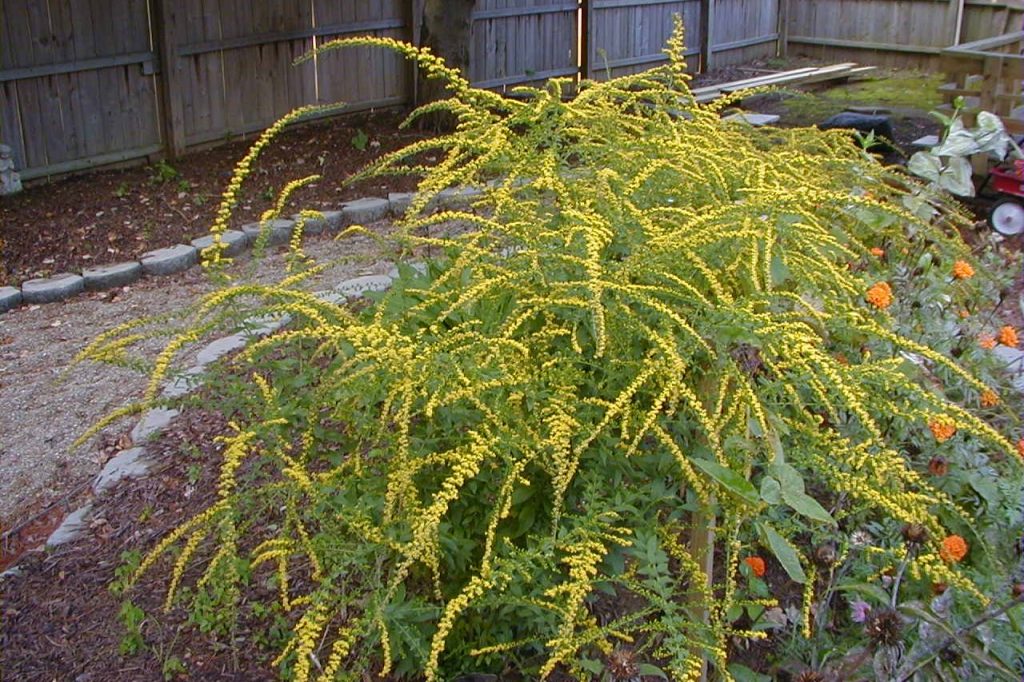 Until that time, the plant is just a large, bushy, deep green plant. When the tiny yellow flowers start to open on the 18″ long arching flower spikes, it turns into a focal point in the garden. It is also good as a cut flower and is relatively attractive to butterflies and many pollinating insects.