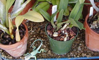 Orchids should only be planted in a specialized orchid medium containing small bark pieces that allow for good drainage. Good drainage is essential and will prevent root rot problems. Repot plants only when roots appear to be almost bursting out of the pot, typically every two or more years.