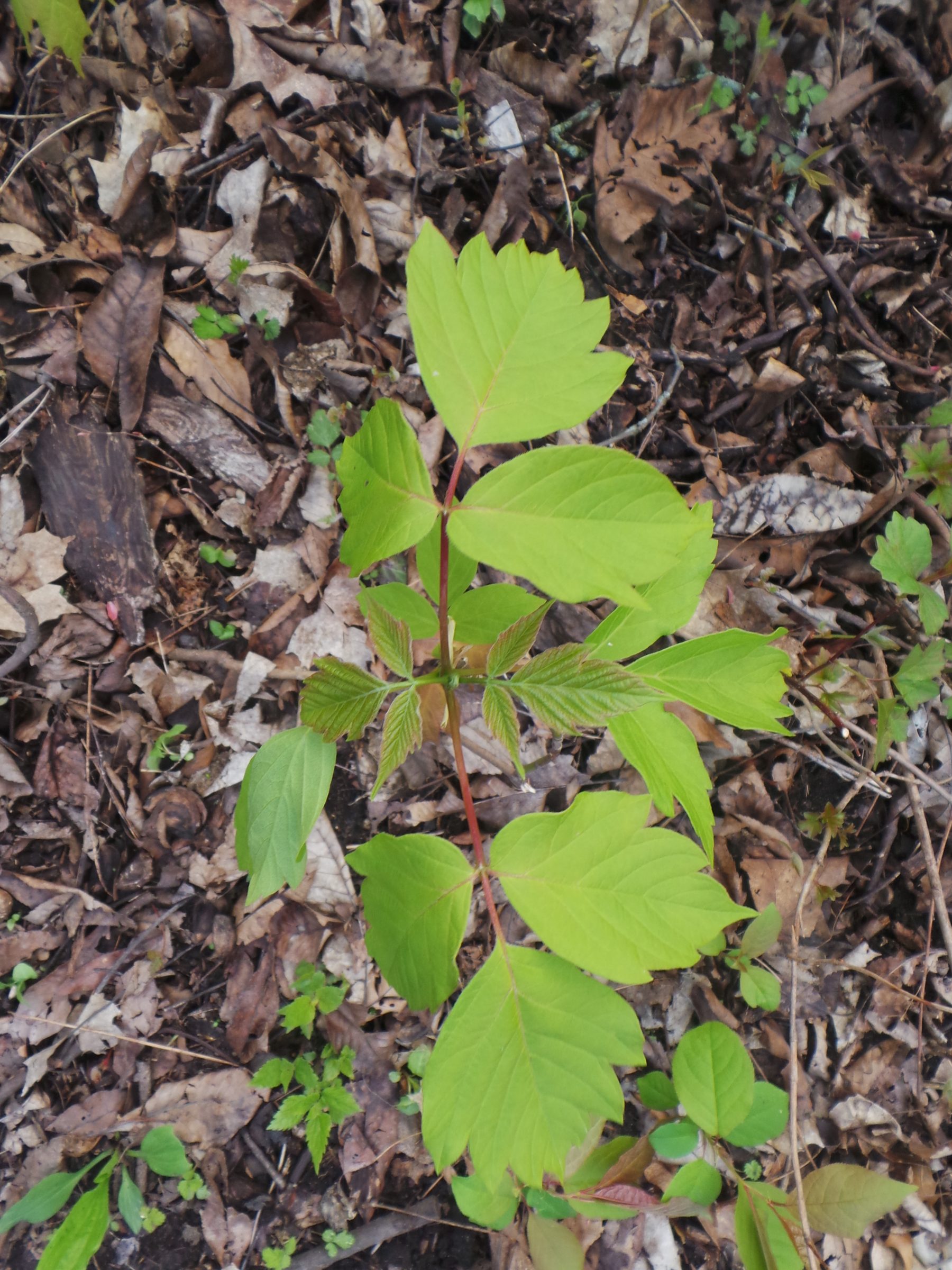 Wild sarsaparilla | 3 leaves at the top of stem; each leaf with 3-7 leaflets |
