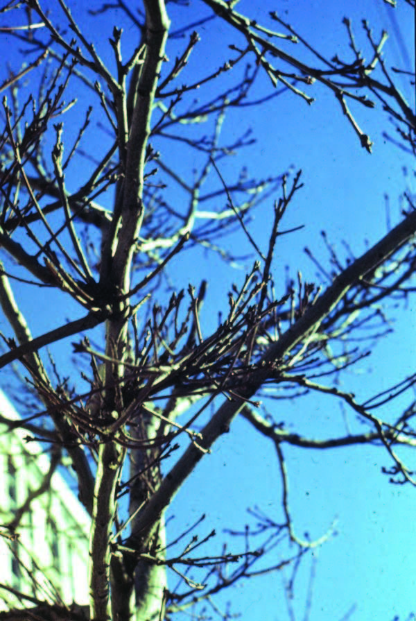 - When the tip of a branch dies back, many new shoots sprout just below the dead area, creating a ”witches’ broom”
