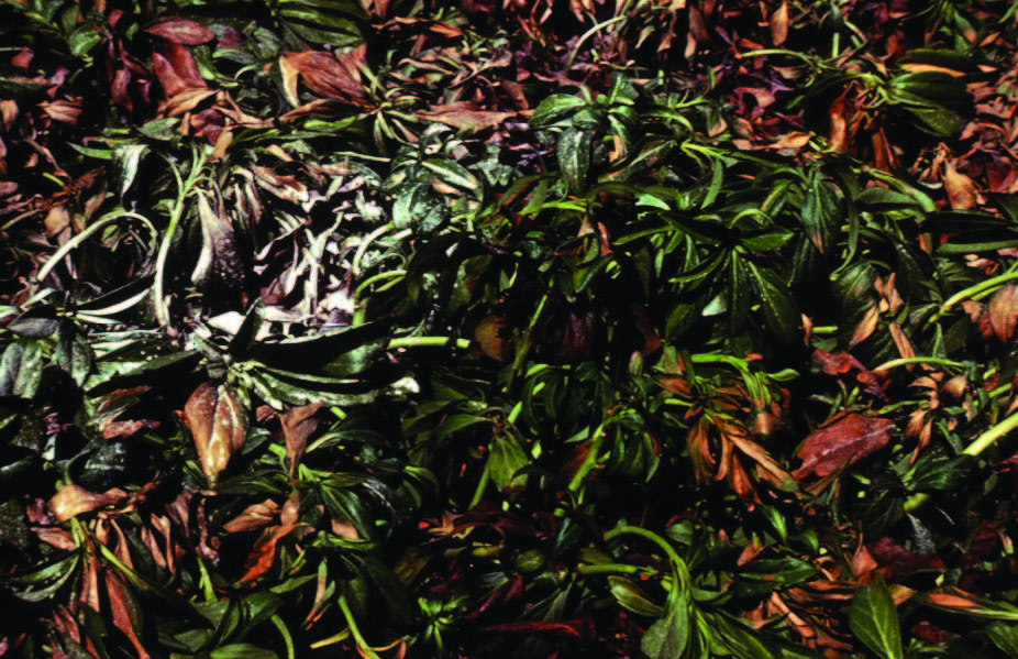 - The damage is more severe on side of plant facing the road or on outer portions of dense plants.