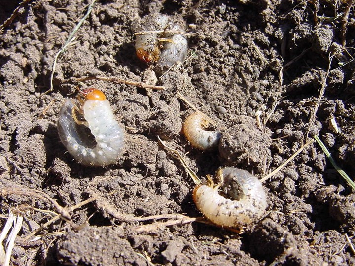 - Monitor and scout lawns for white grub damage in late summer into early fall. Grubs prefer irrigated lawns in full sun, and the percentage of infested, significantly damaged lawns likely in Wisconsin in any given year is low. Carefully peel back turf on edges of any browning areas (where it meets green grass) to check the root zone for grubs. Do not treat lawns with insecticides unless an insect pest causing significant damage is confirmed. Preplanned insecticide applications as part of an annual lawn care program are not suggested.